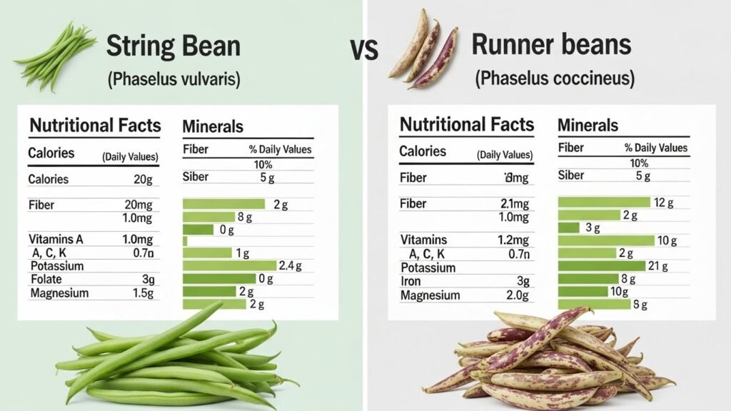 | Nutrient | String Beans (Green Beans) | Runner Beans |