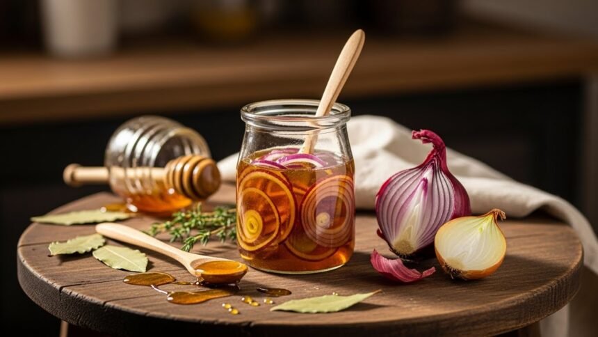 Making onion honey syrup at home is straightforward. Here’s a basic method:
