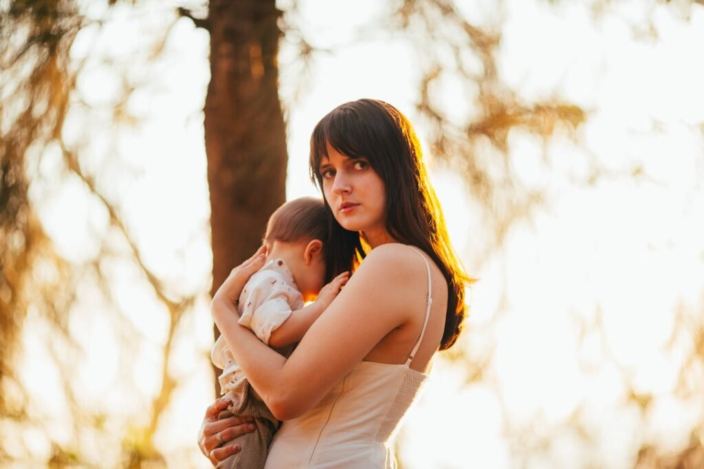 Photo by Helena Lopes: https://www.pexels.com/photo/serious-woman-holding-a-child-27177317/