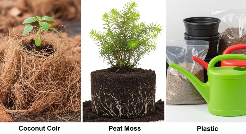 Comparison: Coir vs. Peat vs. Plastic
